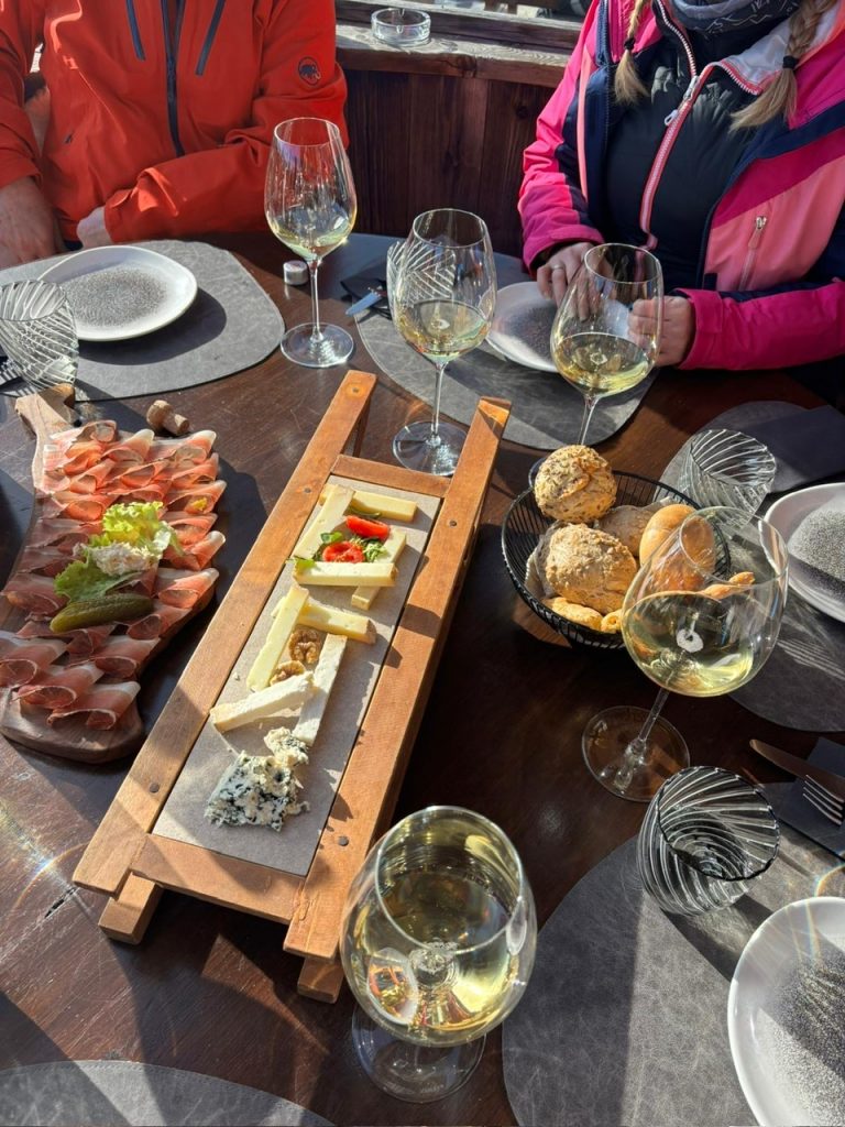 Abseits der Pisten war es Genuss pur auf den Hütten im Skigebiet – Südtiroler Spezialitäten, Sonne im Gesicht und der Blick auf die schneebedeckten Gipfel machten jede Pause zum Erlebnis.